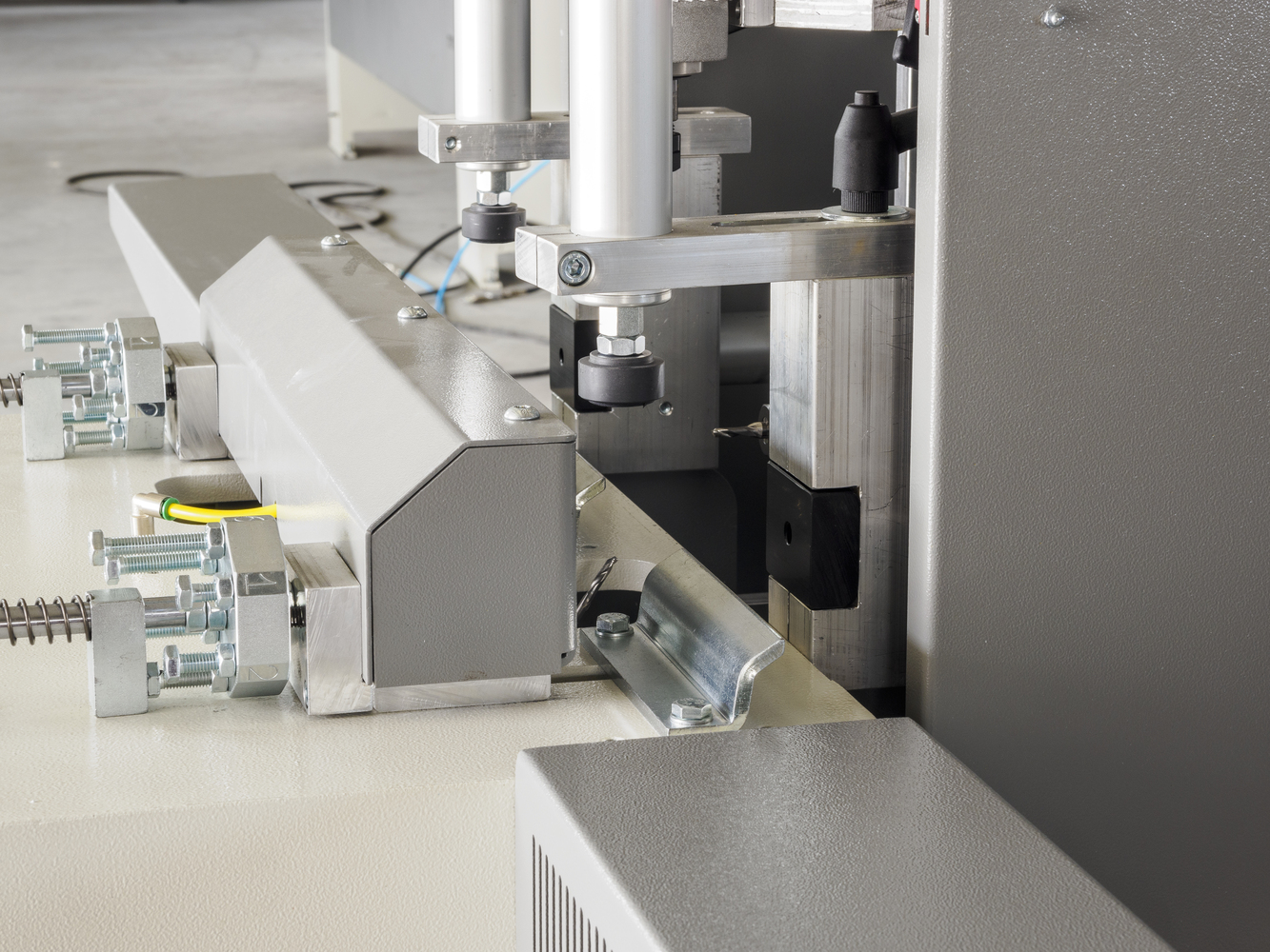 s pneumatskim pomicanjem na vodilicama s recirkulirajućim kugličnim ležajevima. Stroj ima 4 industrijske jedinice za glodanje s inverterskim upravljanjem